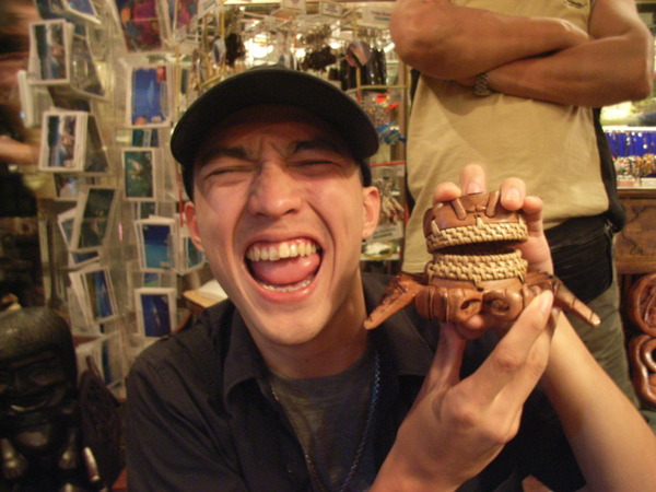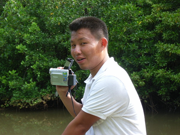 導遊小駱是個很有意思的人,外號跟我高中以來的死黨相同(好像姓駱的人都逃不過被叫小駱的命運),不過長相卻酷似阿Q桶麵廣告裡那位滑稽的主角。年紀跟我相仿,但一身古銅色肌膚就已經可以說明他擔任導遊的豐富經驗。在四天的行程中,除了講話常常冷場之外,在照顧旅客和導覽行程上倒可以說是相當認真稱職,但最讓我印象深刻的,還是他對於大自然的熱情。幾個浮潛的景點,常常都是好幾個小團相距不遠,但我看了好幾位導遊,沒有一位像他那樣不厭其煩、反覆叮嚀,別因為無心(呃,或有心)之過而傷害了寶貴的生物資源或環境:別留下垃圾、別踏到珊瑚、別踢破水母、別傷害小魚....。在解說各種生物的時候,從他的眉飛色舞如數家珍,可以讀出他是真心喜歡這個美麗的生態環境;從他的解說與叮嚀,這份對生態的熱情也很自然的感染到了我們身上。
