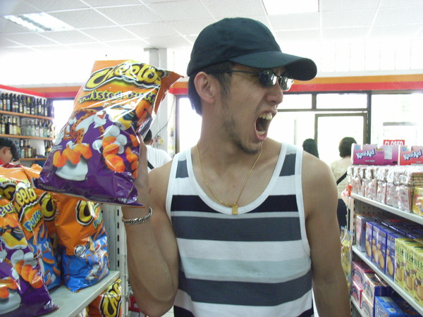 最後一天市區觀光時,我們也逮到空檔去了一家加油站附屬的便利商店。也是賣零食飲料為主,不過比台灣特別的地方,在於它有賣炸雞腿和烤肉串,還有超XXXL size的店員(好吧這個不算)。