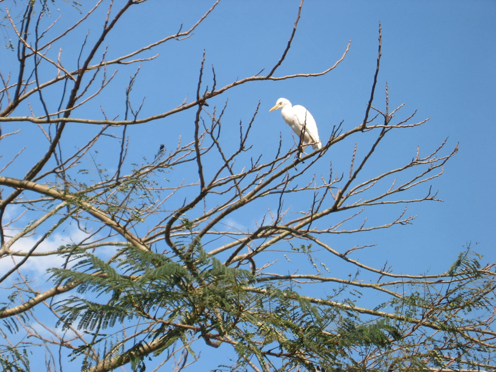 枝頭上,一隻白鷺鷥悠閒地整理著羽毛,