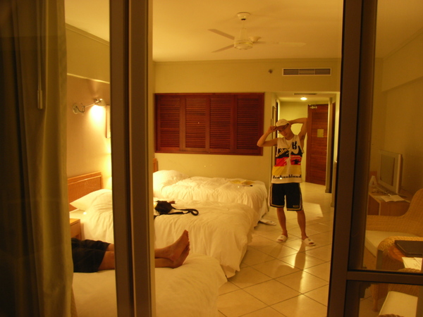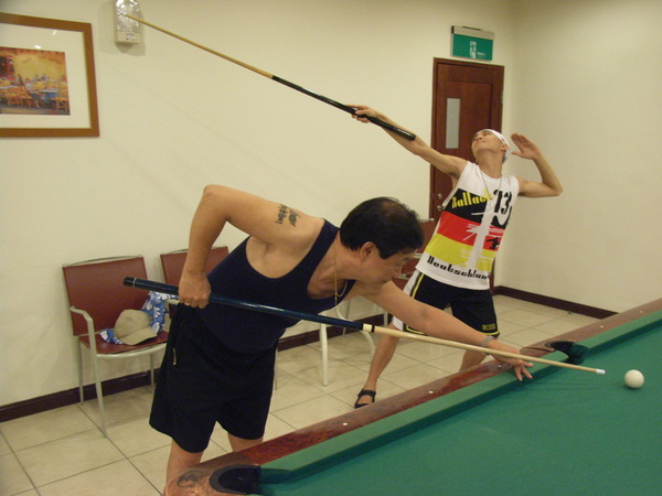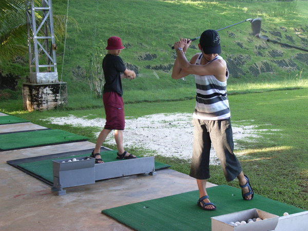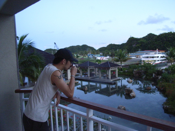 帛琉飯店二人組相當活潑,也很愛找我跟老弟胡鬧和吐曹,尤其是她們相機沒電的時候,我們的相機裡就多了不少她們的身影;其中一位是美麗的六月新娘,但九月就拋夫棄家跑出國玩了~XD;另一位也很可愛,浮潛時只要手離開浮板就會傳來尖叫,好像某種有開關的玩具一樣,屢試不爽~XD。日暉二人組講話很犀利,吐曹導遊小駱的力道十足,也博得不少笑聲,最後一天我們去日暉串門子的時候,就是蒙她們送了兩張券,才有免費的高爾夫可以打,其中一位更是訓練有素,常常開出我自嘆弗如的好球(另外一位就跟我弟差不多啦~哈哈~)。